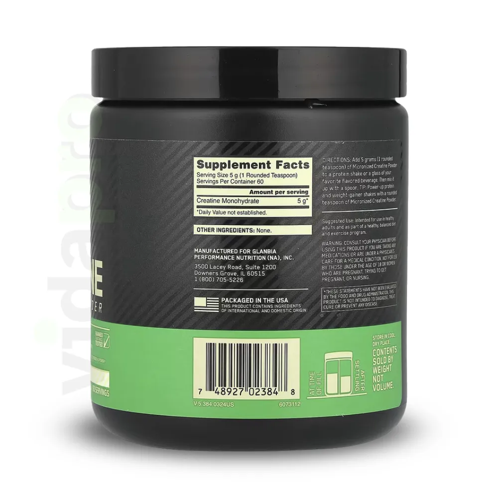 La Creatina Monohidratada Micronizada de Optimum Nutrition es una de las opciones más confiables para aumentar tu rendimiento físico, mejorar la fuerza y potenciar el desarrollo muscular.