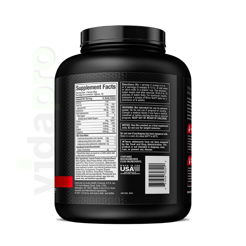 Nitro-Tech no es solo proteína. Incluye creatina monohidratada y BCAA, lo que ayuda no solo a construir músculo, sino también a mejorar la fuerza y la recuperación.